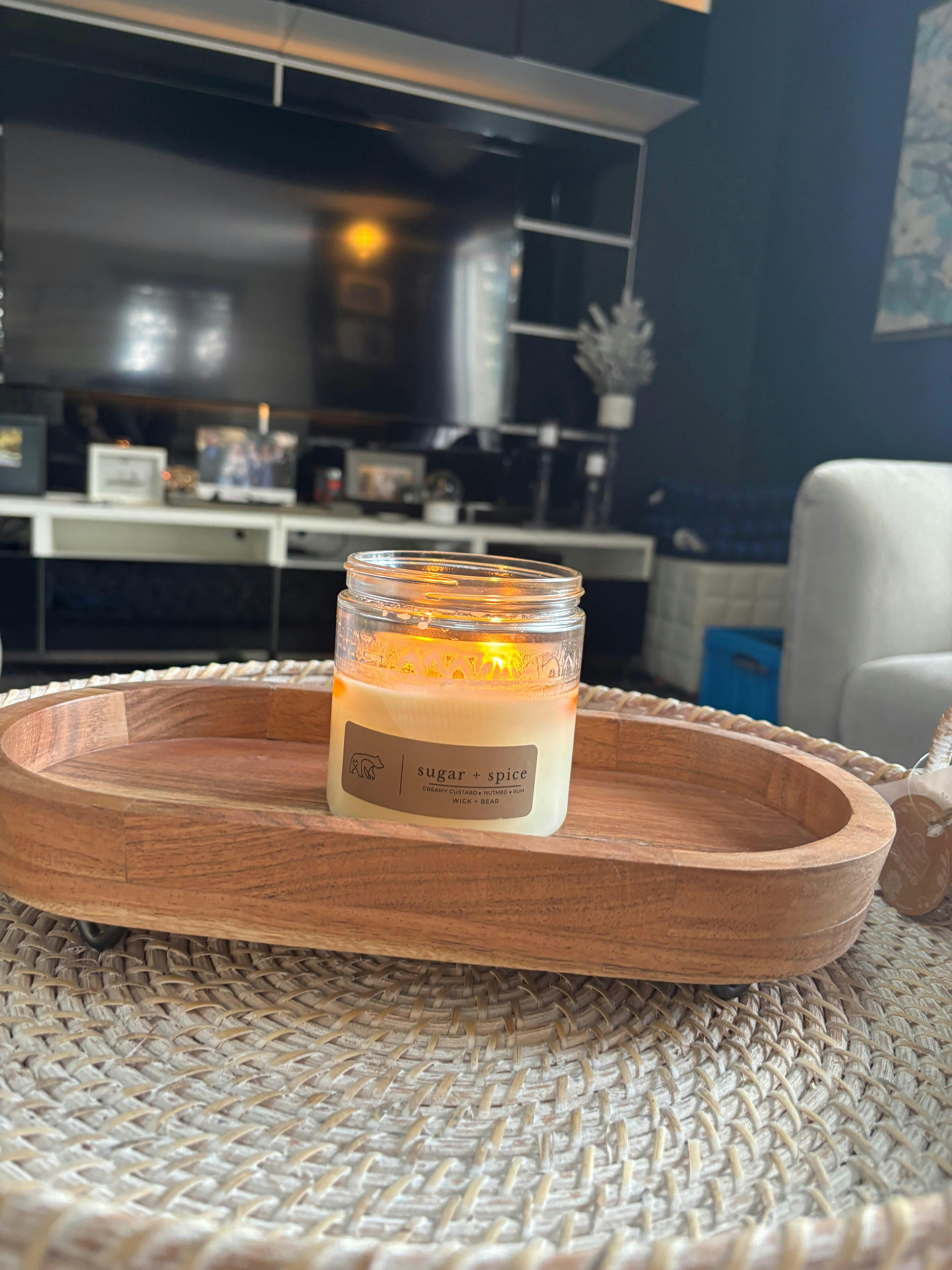 Each candle is made with cotton wicks and natural soy wax. The low melting point of the soy wax allows for longer burn time.